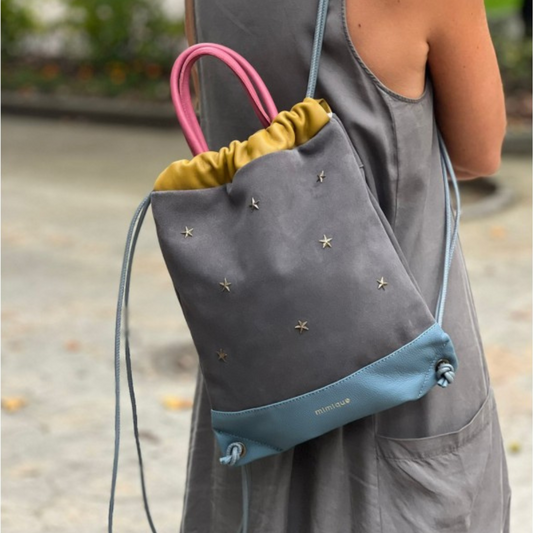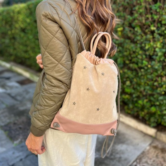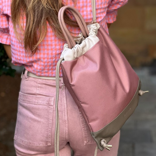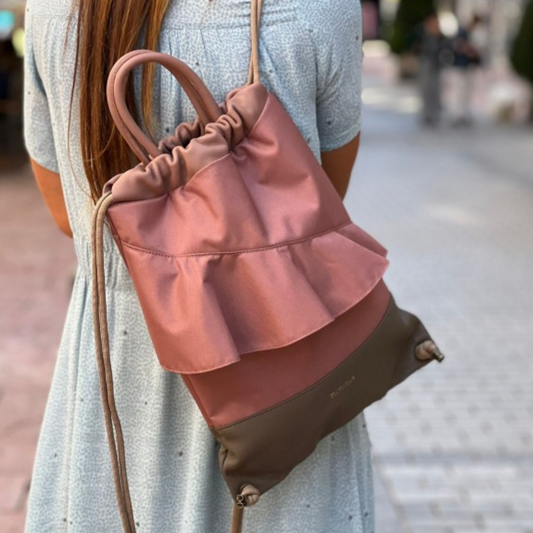Bolso Mochila Tachuelas Mini Rosa Vintage