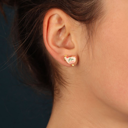 Pendientes Botón Gallinas Rosas Paulette Fantasía