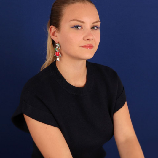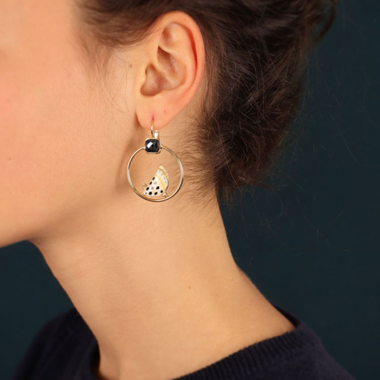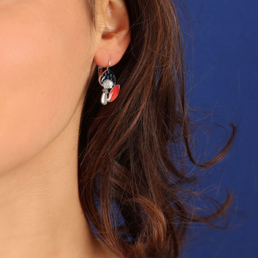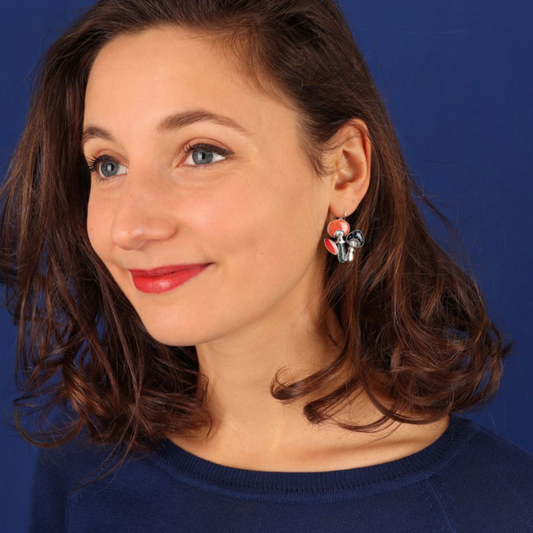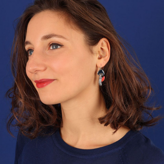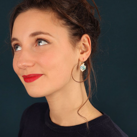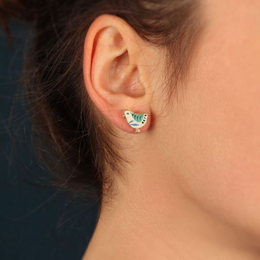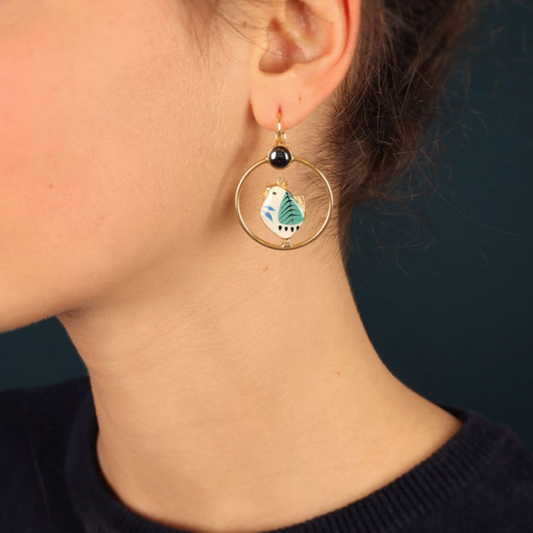 Pendientes Botón Gallinas Azules Paulette Fantasía