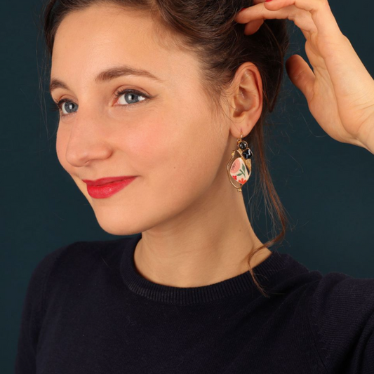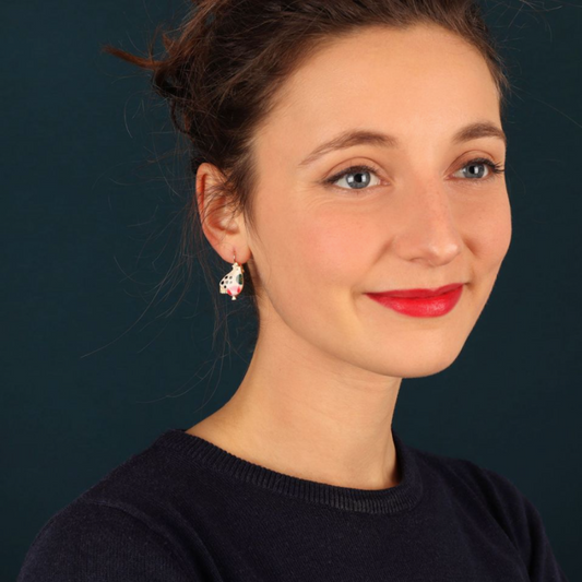 Pendientes Botón Gallinas Rosas Paulette Fantasía