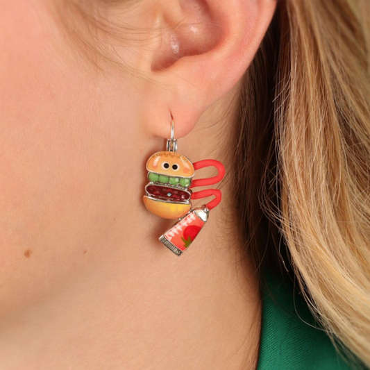 Pendientes Hamburguesa Ketchup con cierre catalán